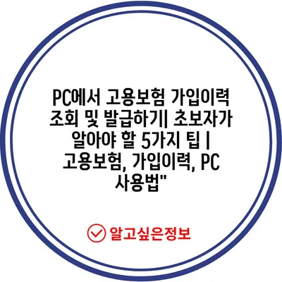PC에서 고용보험 가입이력 조회 및 발급하기| 초보자가 알아야 할 5가지 팁 | 고용보험, 가입이력, PC 사용법”