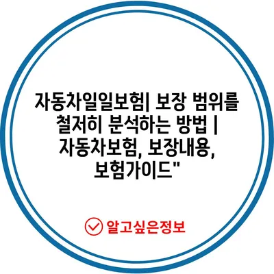 자동차일일보험| 보장 범위를 철저히 분석하는 방법 | 자동차보험, 보장내용, 보험가이드”