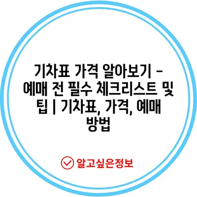 기차표 가격 알아보기 – 예매 전 필수 체크리스트 및 팁 | 기차표, 가격, 예매 방법