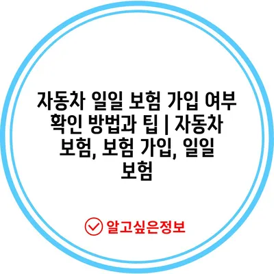 자동차 일일 보험 가입 여부 확인 방법과 팁 | 자동차 보험, 보험 가입, 일일 보험