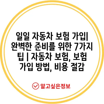 일일 자동차 보험 가입| 완벽한 준비를 위한 7가지 팁 | 자동차 보험, 보험 가입 방법, 비용 절감