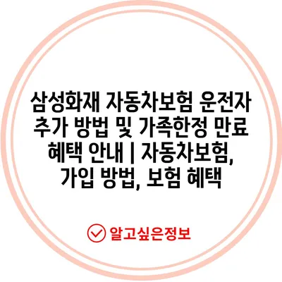 삼성화재 자동차보험 운전자 추가 방법 및 가족한정 만료 혜택 안내 | 자동차보험, 가입 방법, 보험 혜택