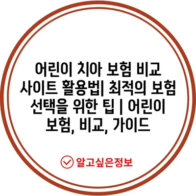 어린이 치아 보험 비교 사이트 활용법| 최적의 보험 선택을 위한 팁 | 어린이 보험, 비교, 가이드
